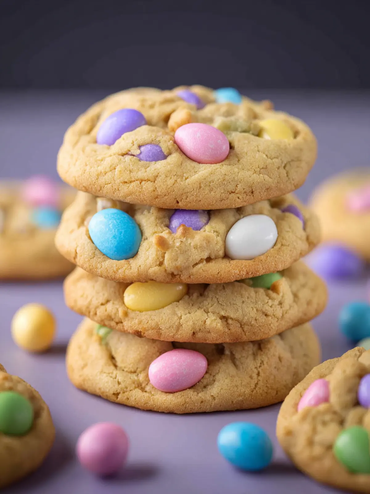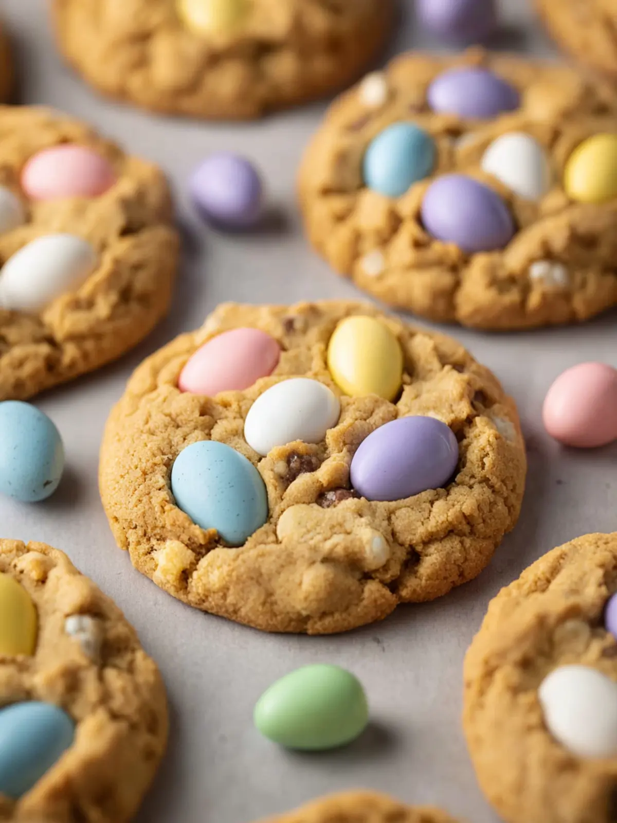 M&M’s and Mini Cadbury Eggs: The stars of the show! These festive candies bring vibrant colors, irresistible crunch, and loads of chocolatey goodness into each bite, making these cookies a real treat.