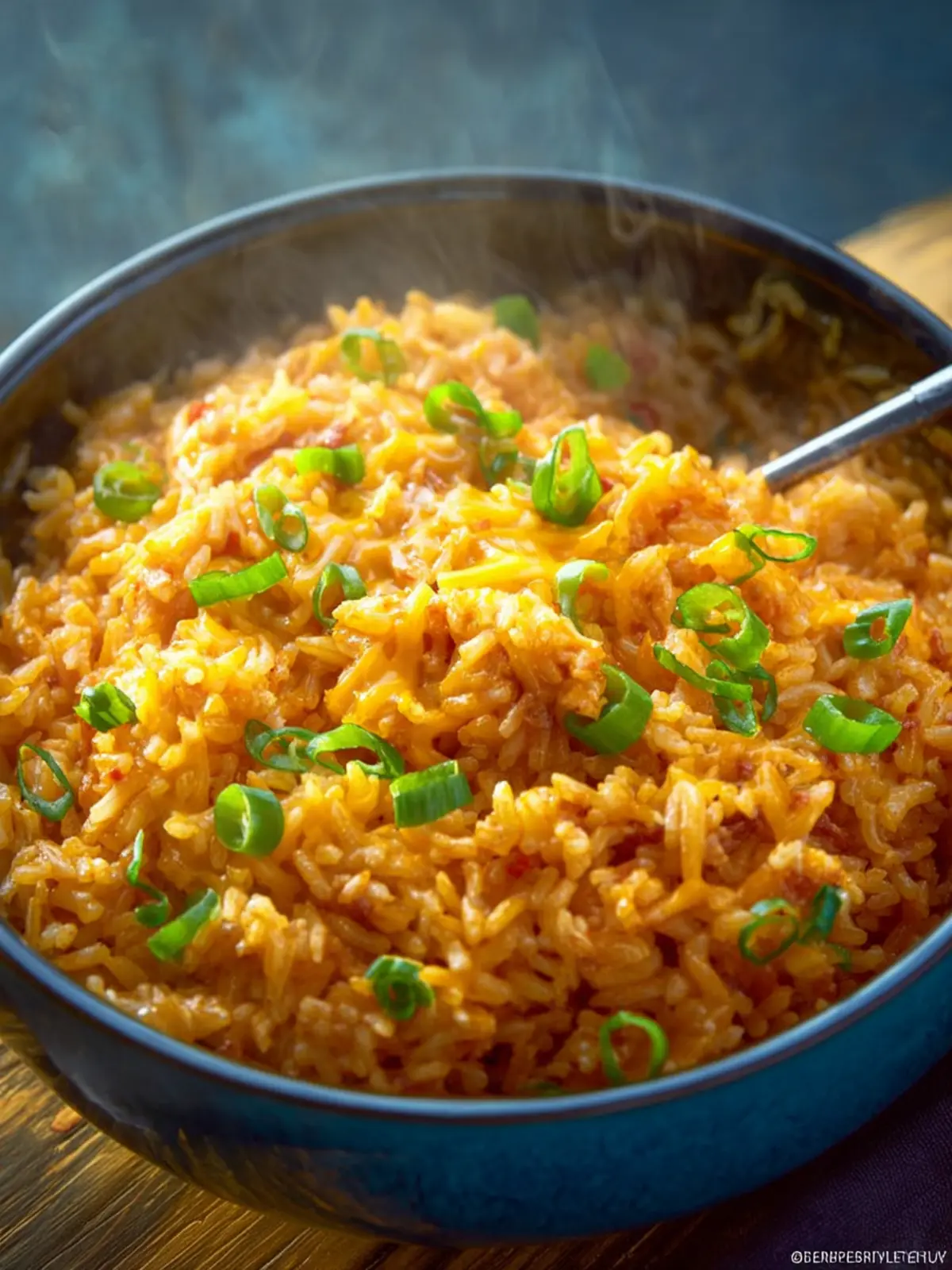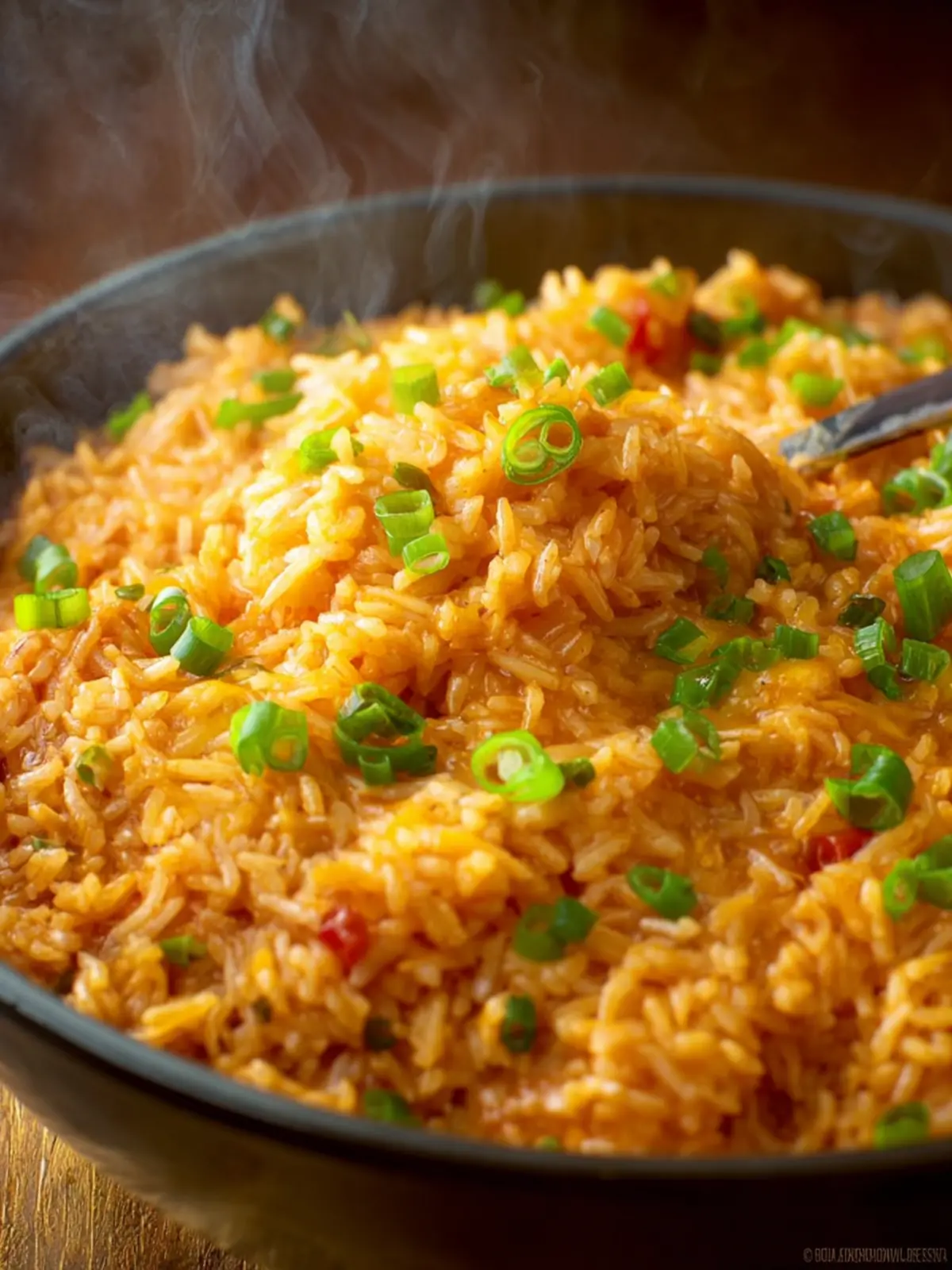 Veggies: Diced bell peppers and onions add freshness and a slight crunch, balancing the cheesiness and richness of the rice.