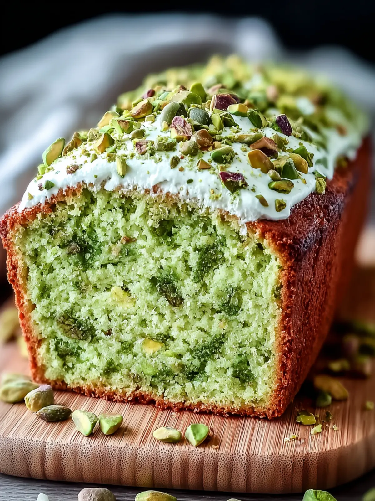 This delicious pistachio pudding loaf is moist and flavorful, perfect for any occasion.