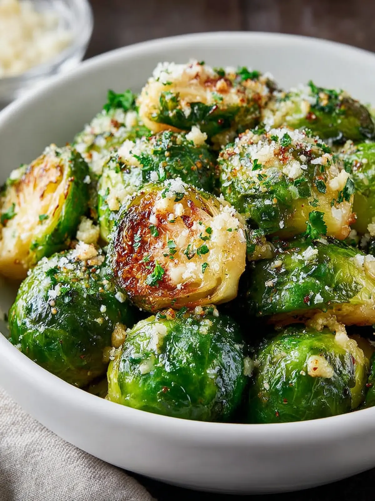 To take your Garlic Parmesan Roasted Brussels Sprouts to the next level, consider tossing in some chopped nuts, like walnuts or pecans, for added texture. The rich nuttiness complements the Brussels sprouts wonderfully, while still allowing the cheesy goodness to shine.