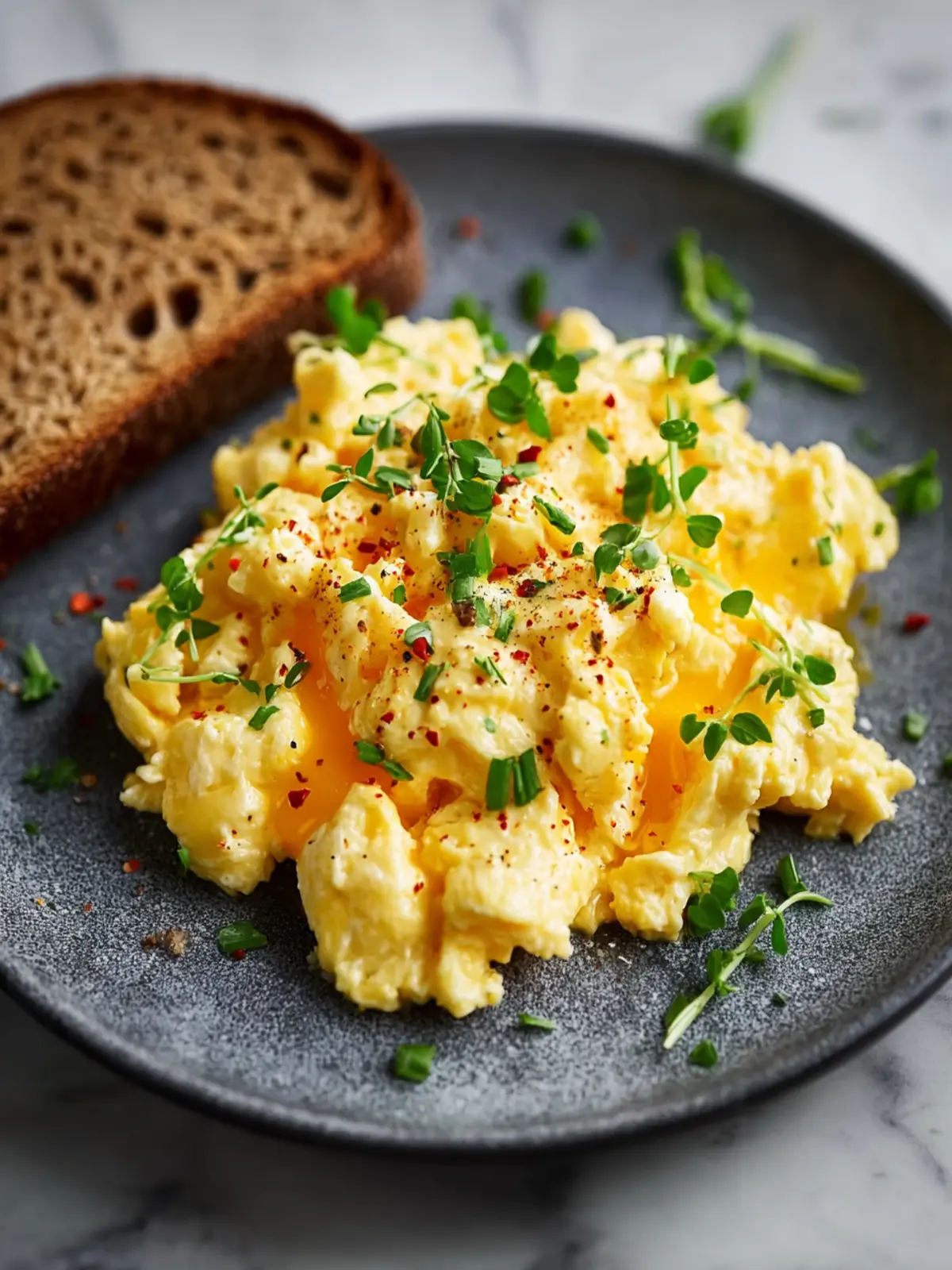 Versatile Serving Options: Whether paired with toast, fresh herbs, or avocado, these scrambled eggs are the perfect canvas for your favorite toppings.