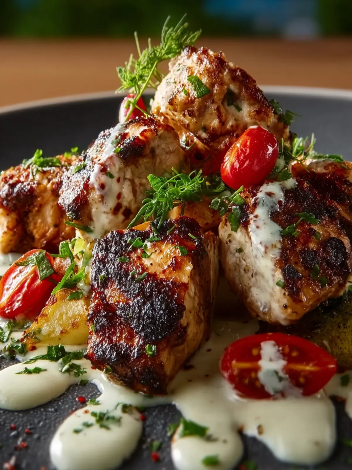 This combination of ingredients makes for a dish that is sure to impress, combining simplicity with rich flavors. Dive in and experience the magic of grilled chicken bites with creamy garlic sauce!