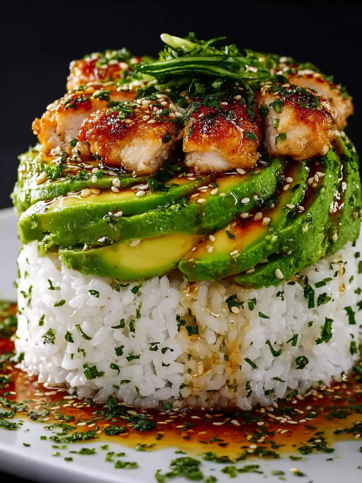Honey Lime Chicken Avocado Rice Stack: Irresistibly Fresh Delight