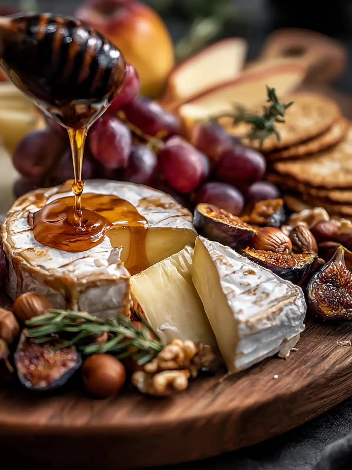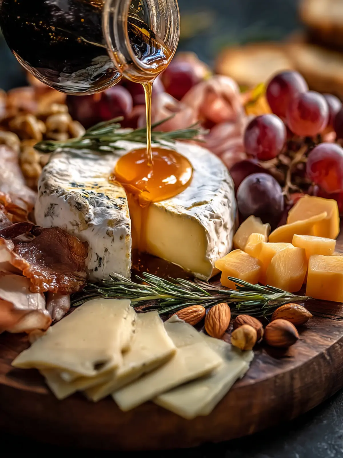 Honey or Maple Syrup: A drizzle of honey or maple syrup ties the flavors together with a touch of sweetness, enhancing the cheese and fruit. It also adds a polished finish to your board.