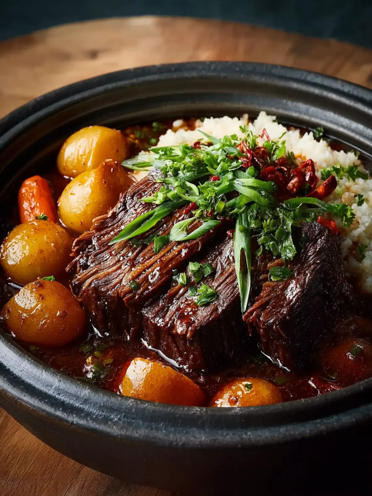 • Garnish: Sprinkle some chopped green onions or sesame seeds on top of the pot roast for an extra layer of flavor and a pop of color.