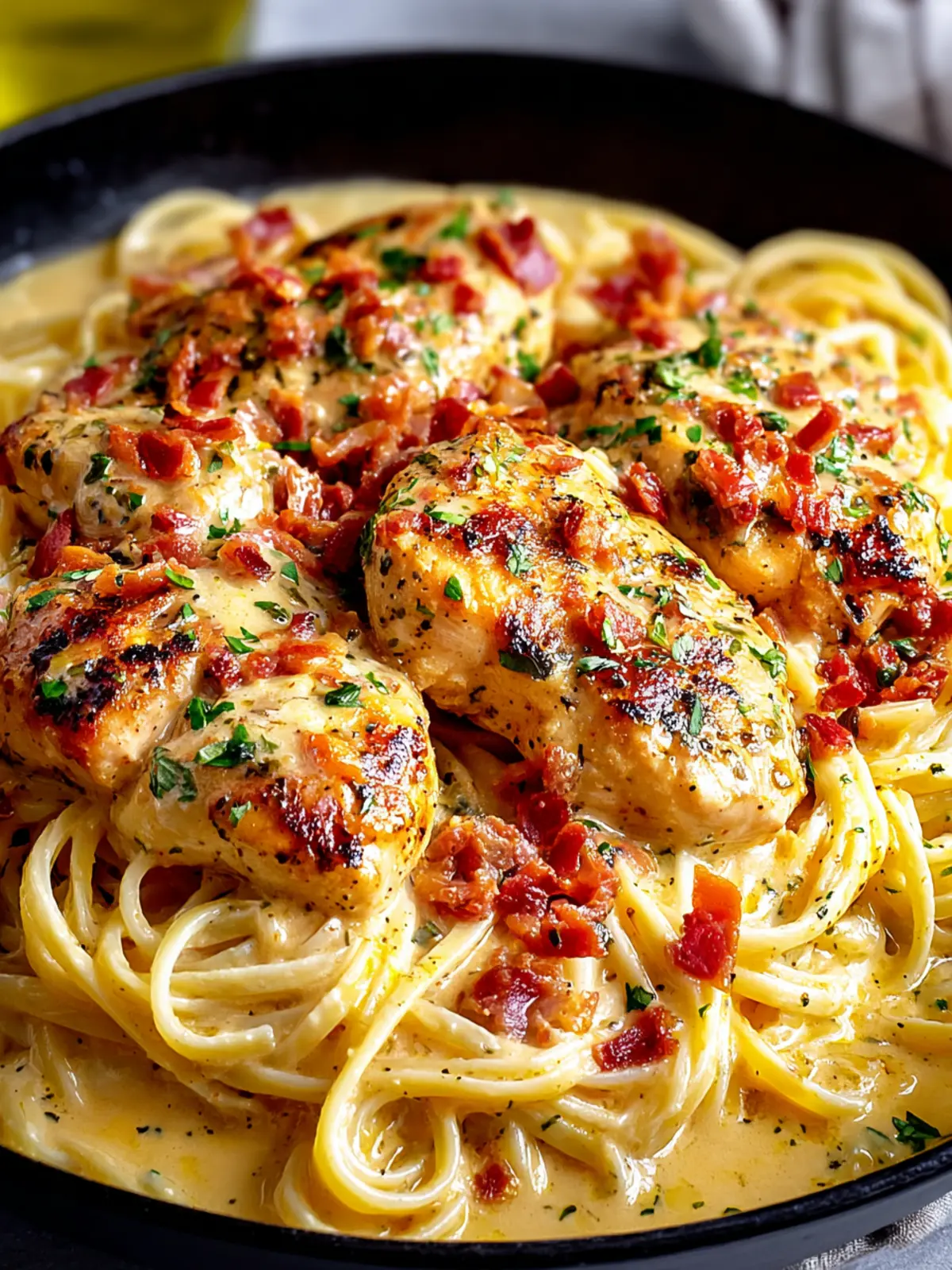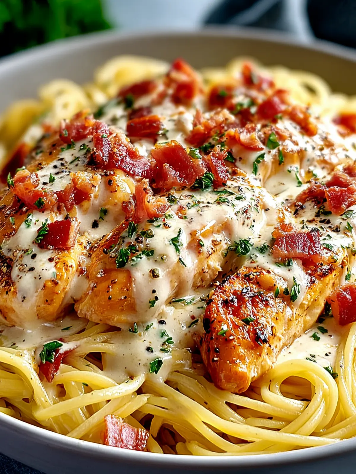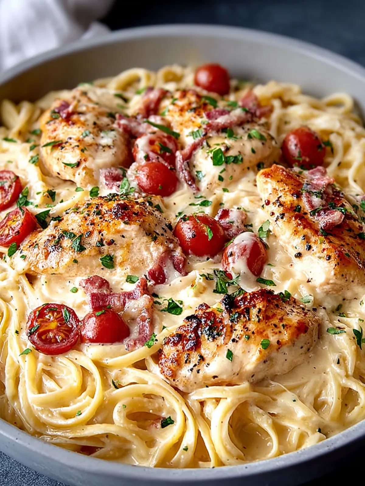 A delicious and creamy pasta dish featuring tender chicken breasts, garlic, and Parmesan cheese.