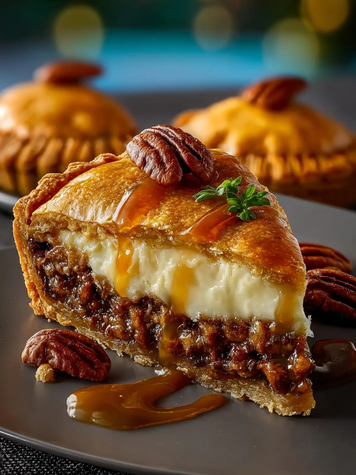 This delicious Pecan Cheesecake Pie combines a smooth cheesecake layer with a rich pecan topping, all enclosed in a flaky pie crust.