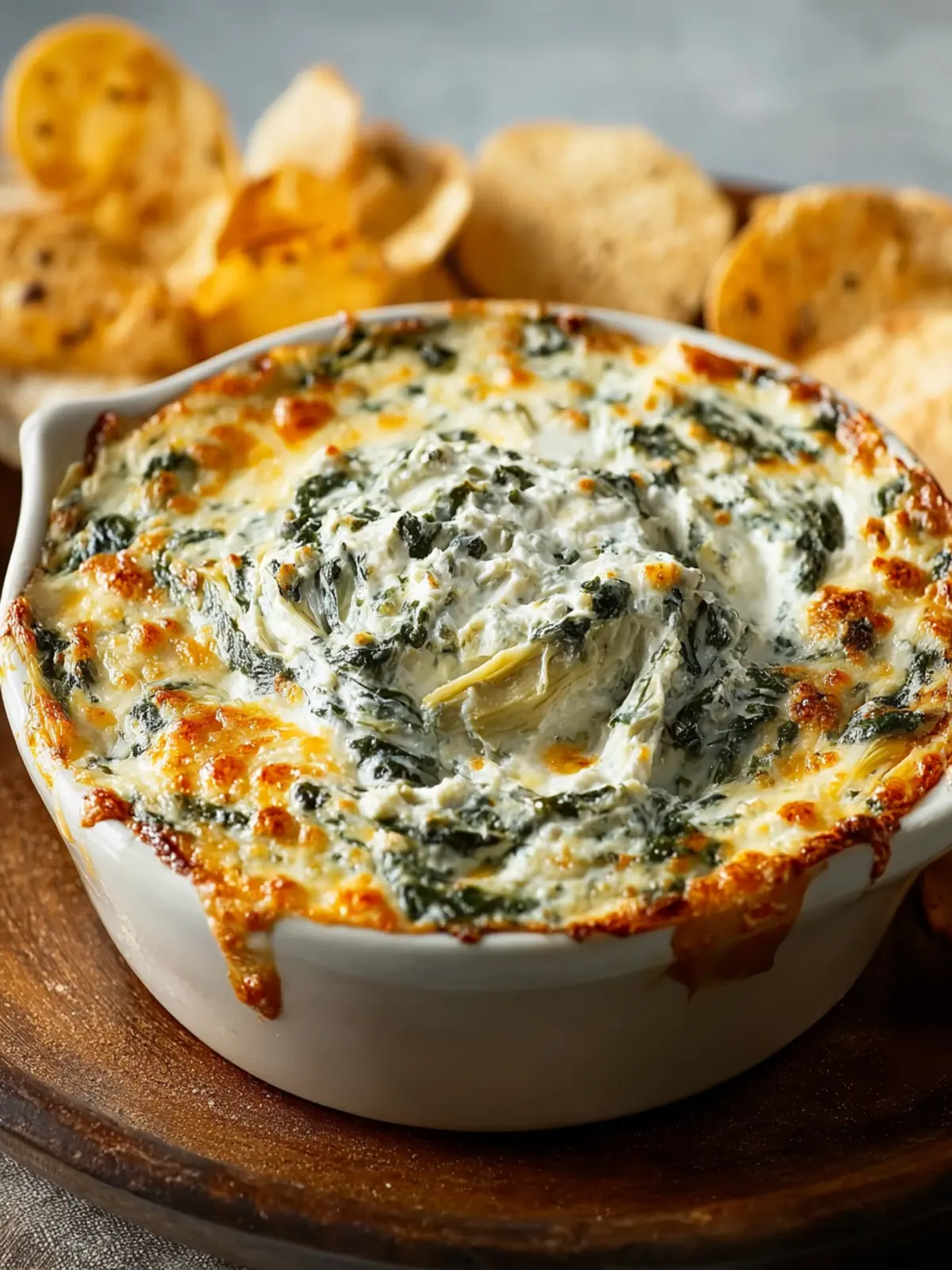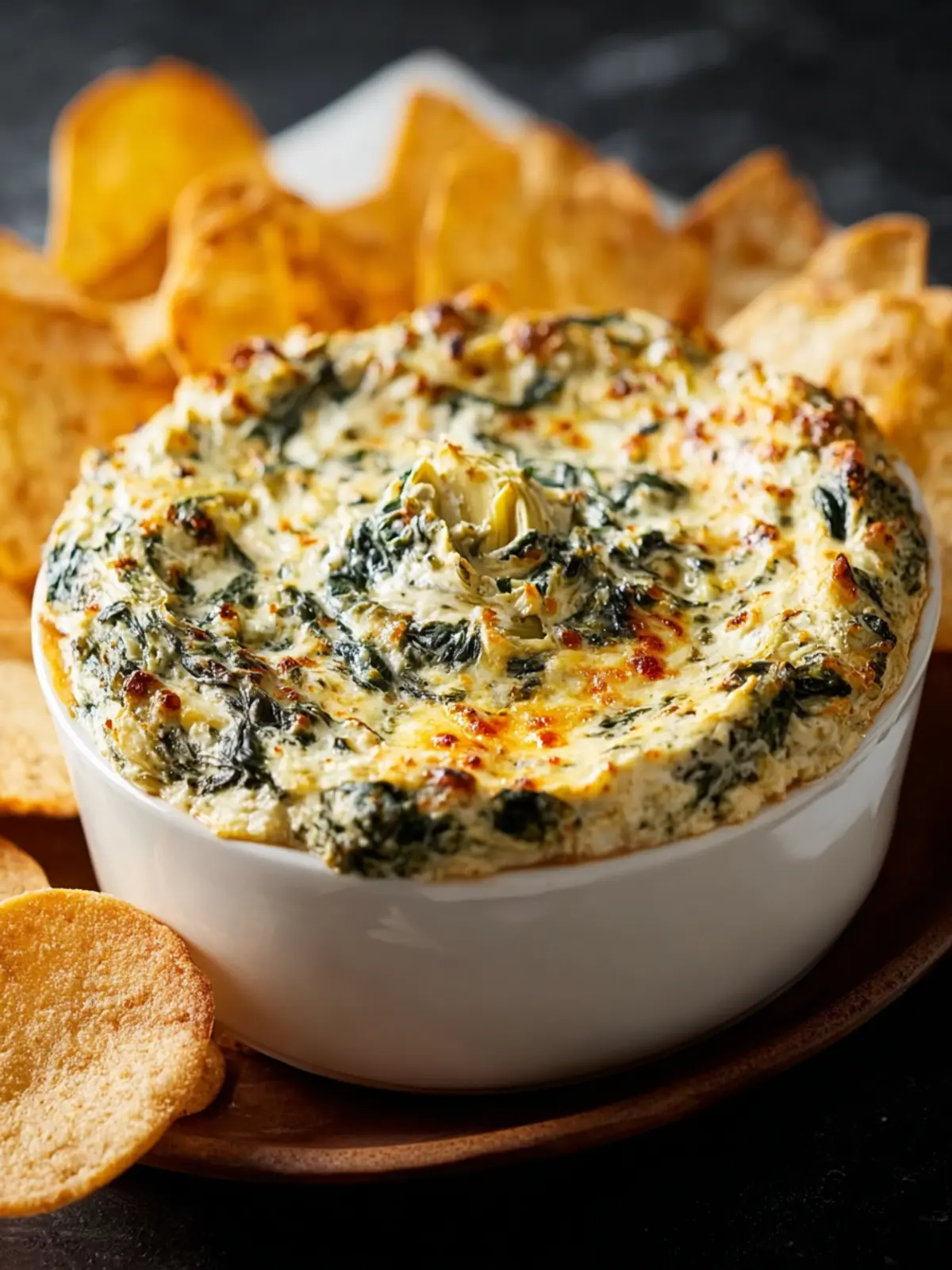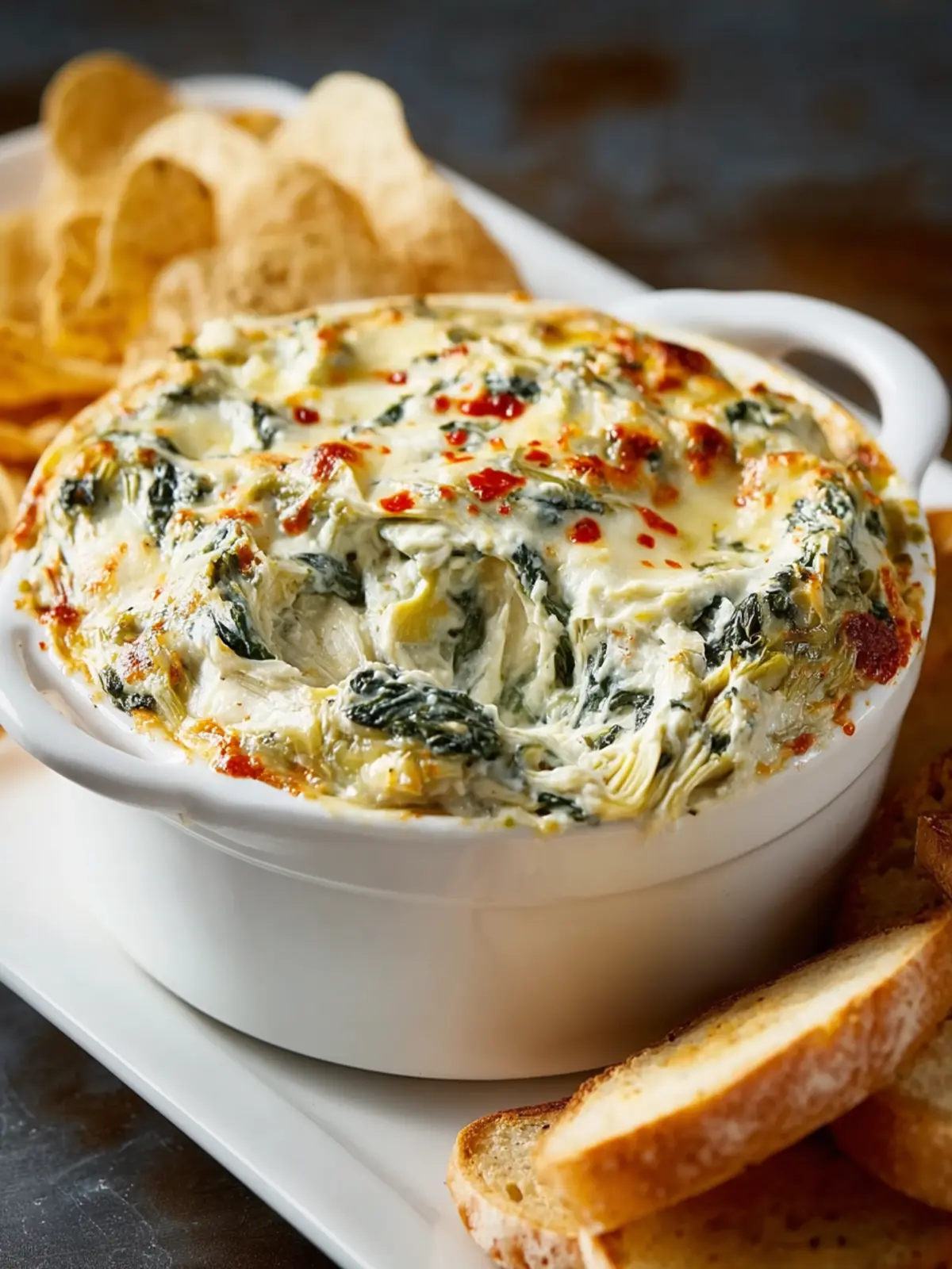 A delicious creamy spinach and artichoke dip perfect for gatherings or cozy nights in.