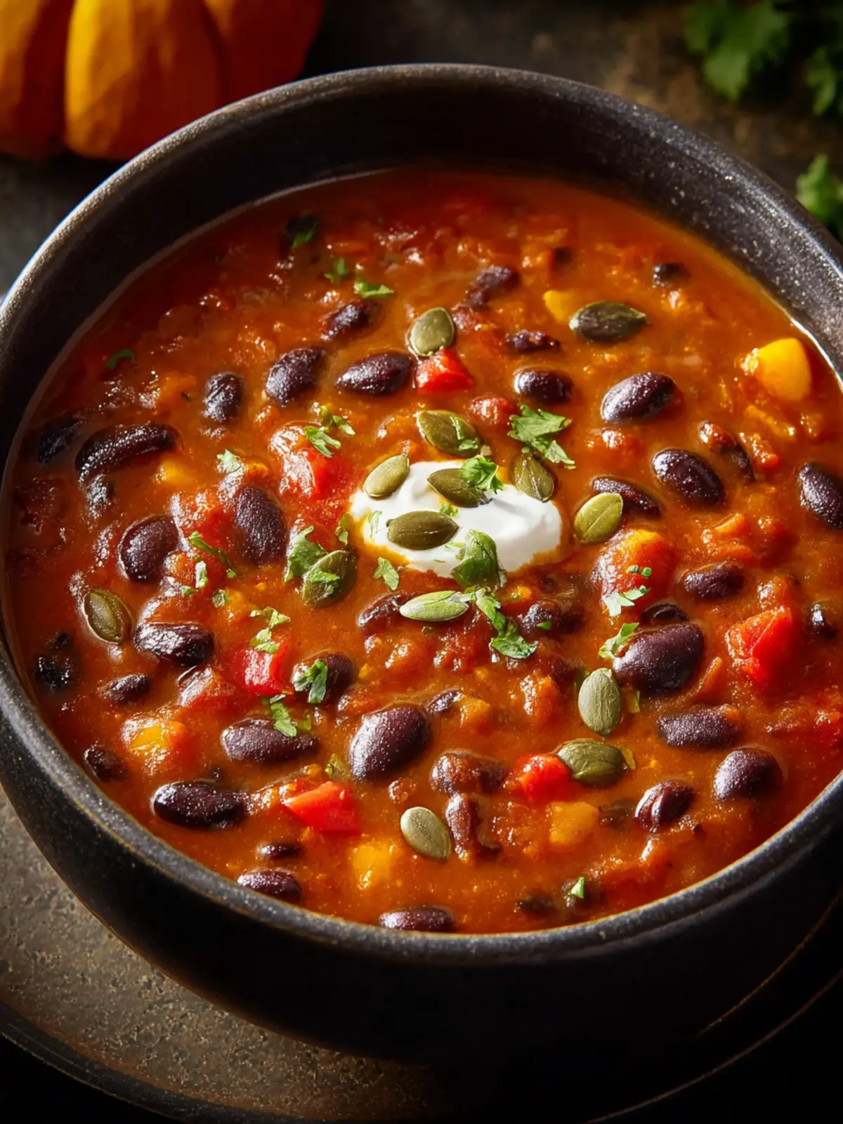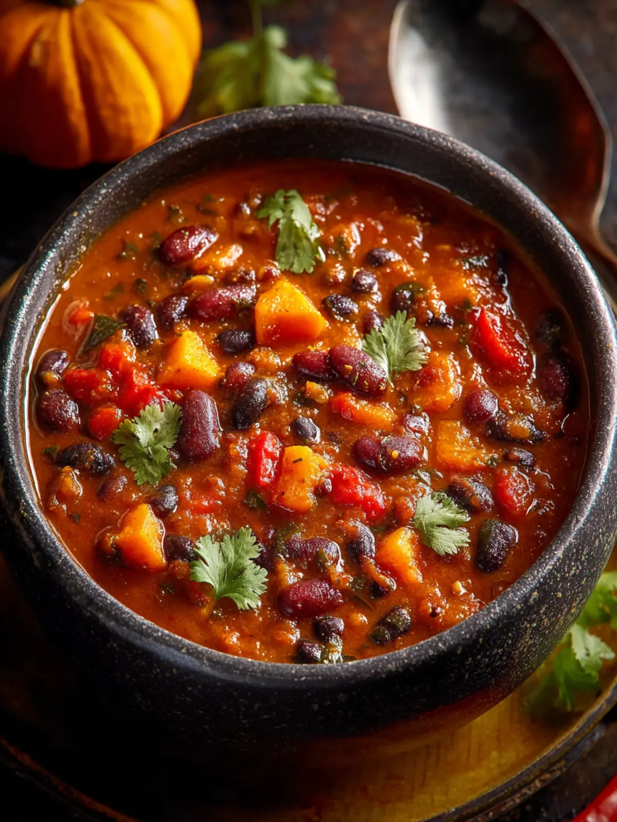 A hearty pumpkin and bean chili that is perfect for a cozy meal.
